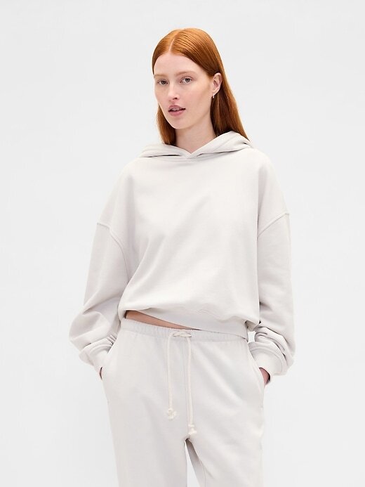 • Moletom curto oversized com capuz, confeccionado em moletom francês macio e pesado, confeccionado em mistura de algodão.
