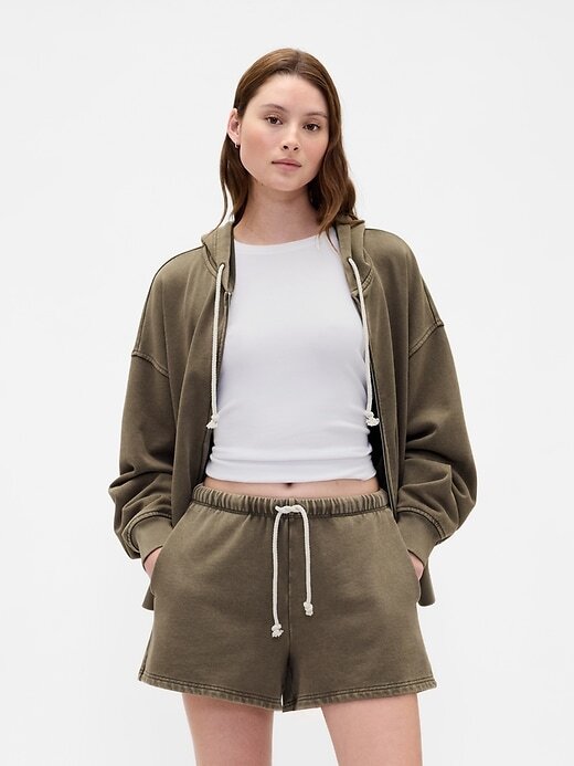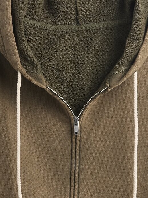 - Moletom com capuz grande, em moletom francês de mistura de algodão macio e pesado, com zíper.