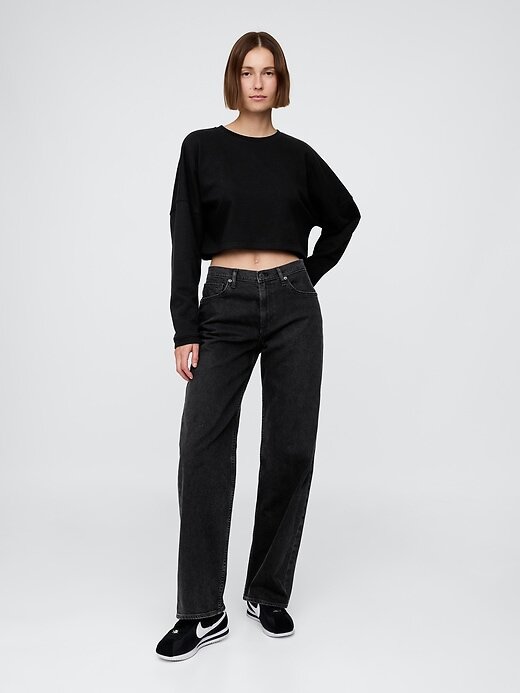 - Moletom cropped oversized em moletom francês macio e com mistura de algodão.