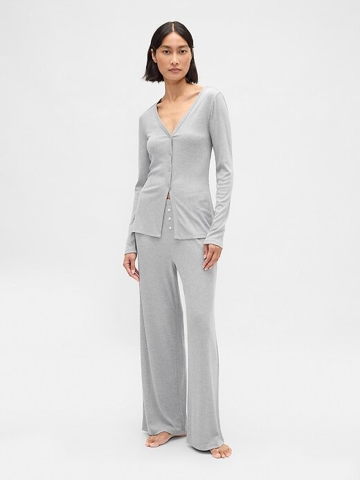 - Cardigan de pijama canelado supermacio em mistura de modal.