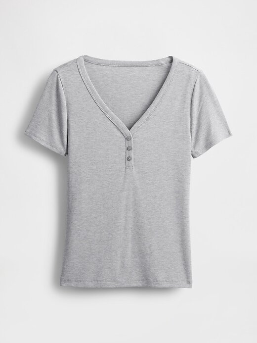 - Decote em V, carcela com botões Henley.