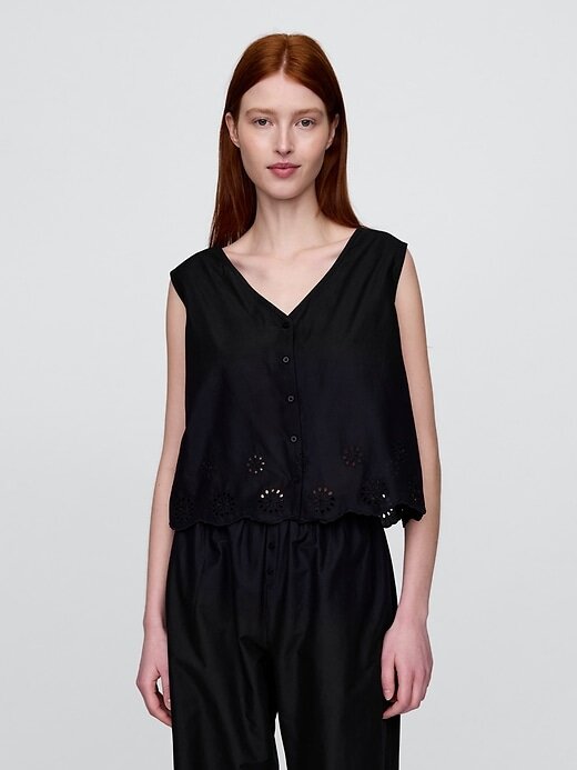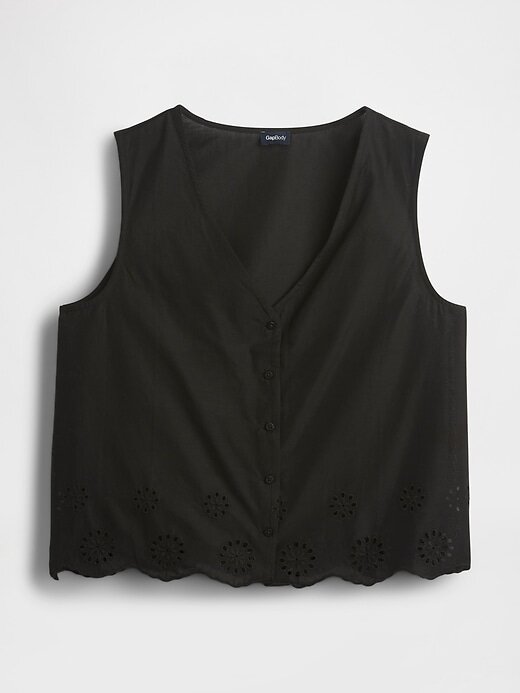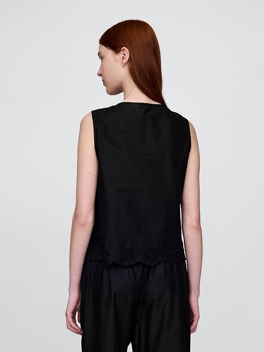 - Detalhe com ilhós na bainha recortada.