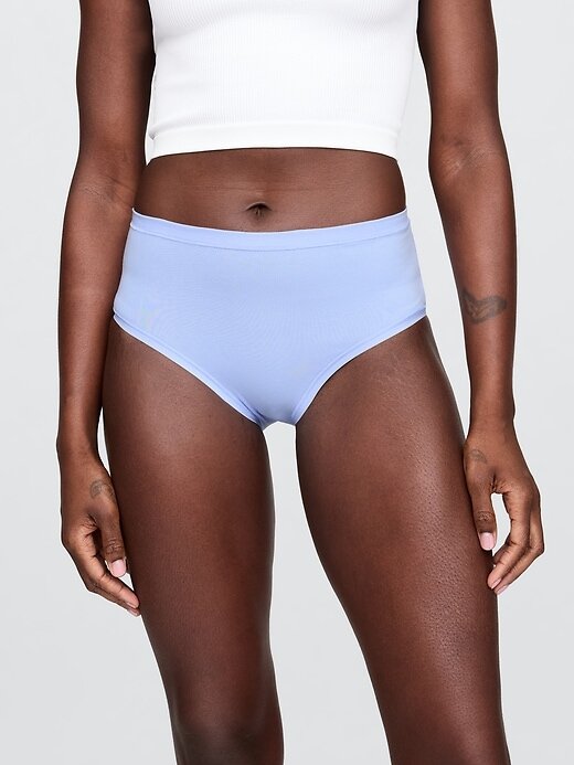 • Cueca biquíni de cintura alta em malha de algodão macio e elástico.