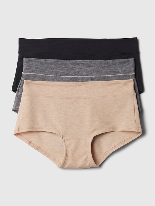 - Acabamento elástico ao longo das aberturas das pernas.