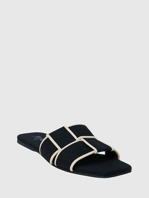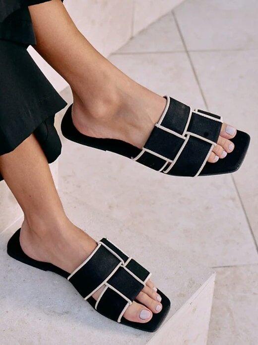 - Sandália chique e plana com faixa trançada e bico quadrado.