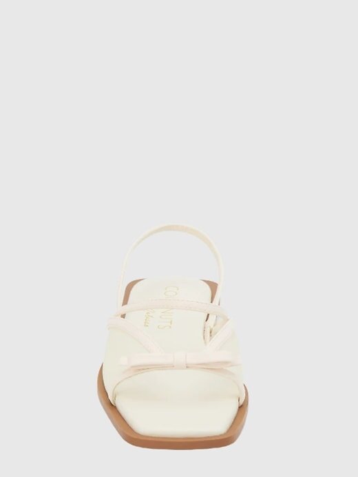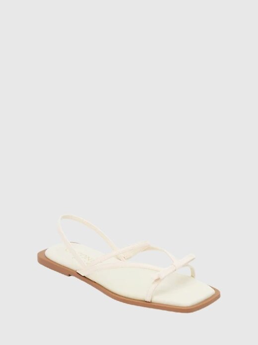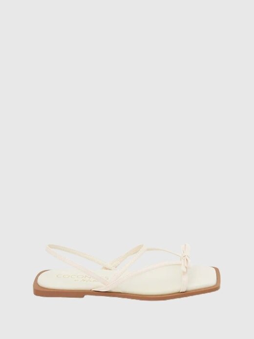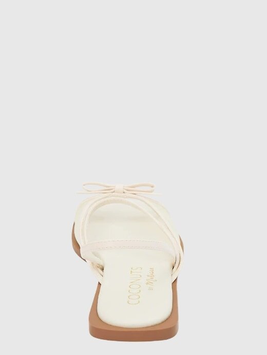 - Sandália vegana, plana, tira traseira com detalhe de laço.
