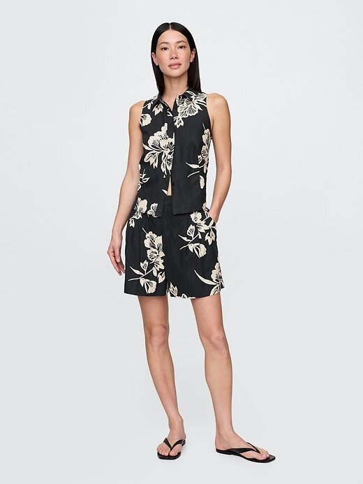 Shorts 365 de cintura alta em mistura de linho