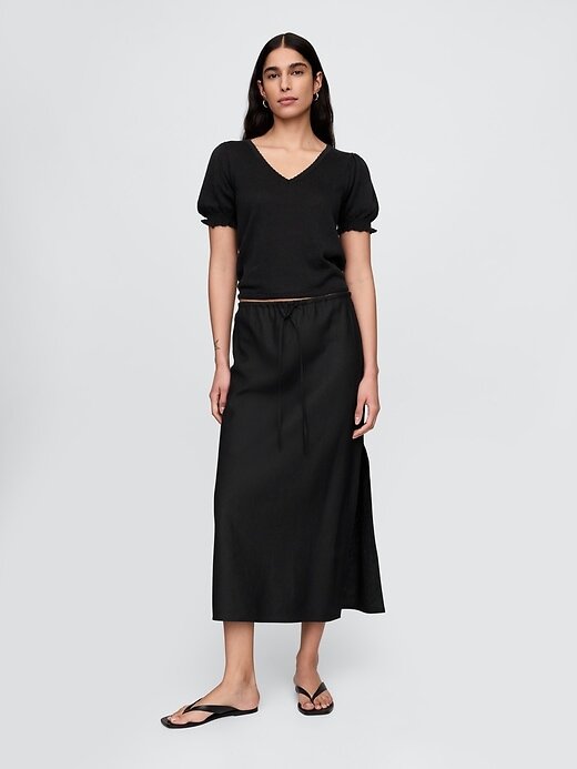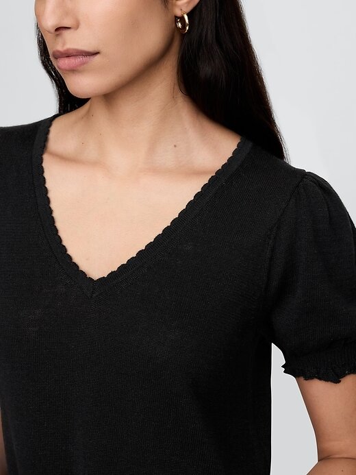 • Blusa suéter macia em mistura de linho.