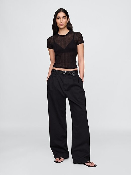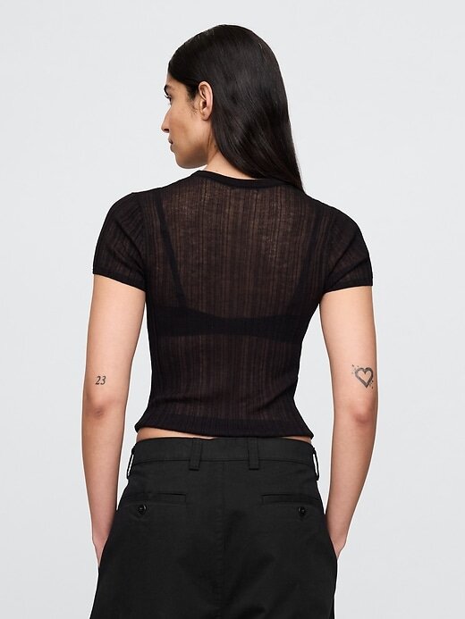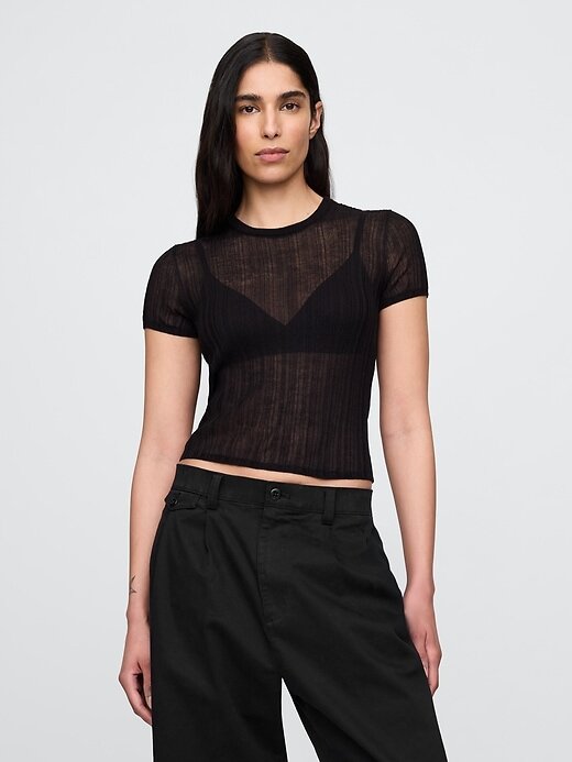• Camiseta de malha canelada transparente.