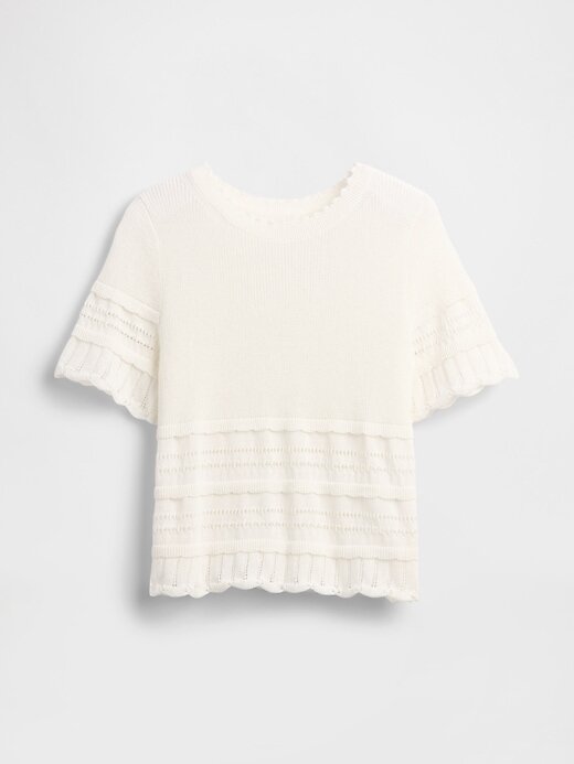 - Detalhes de ponto pointelle nas mangas e no corpo.