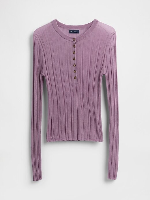 • Blusa Henley de malha canelada, macia e transparente.