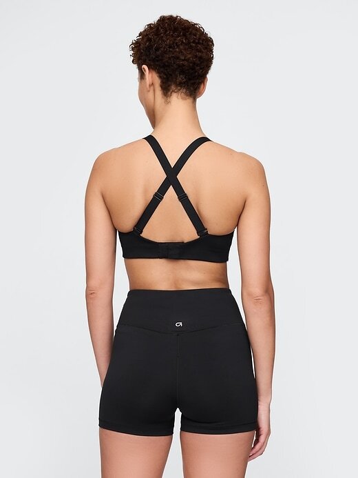 - Sutiã esportivo macio e elástico com costas cruzadas.