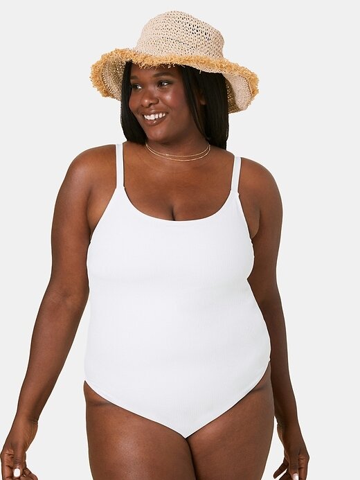 - A definição de um essencial atemporal, este maiô clássico apresenta um decote redondo limpo e alças finas ajustáveis para um suporte elegante.