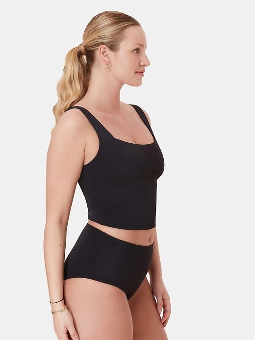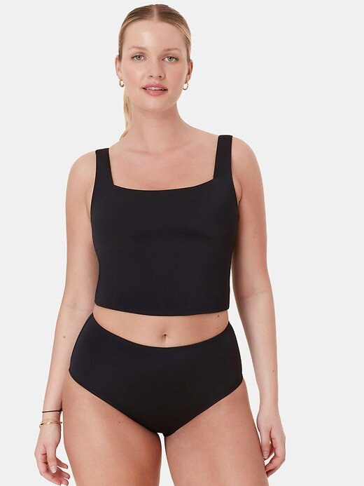 - O decote quadrado do Tank remete ao glamour vintage, enquanto o tecido ajustado oferece suporte e estrutura para o nível perfeito de fixação.
