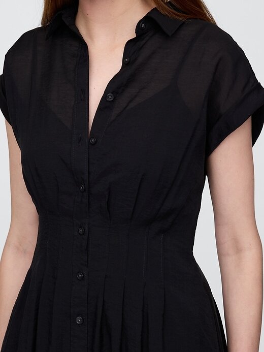 - Vestido-camisa midi transparente em mistura de tencel com forro de camisola de algodão macio.