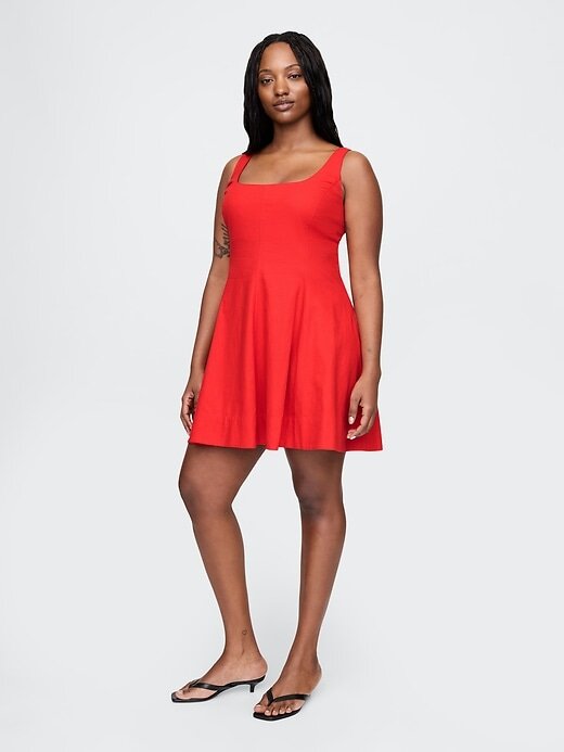 - Vestido curto macio e pesado em mistura de linho com forro de algodão macio.