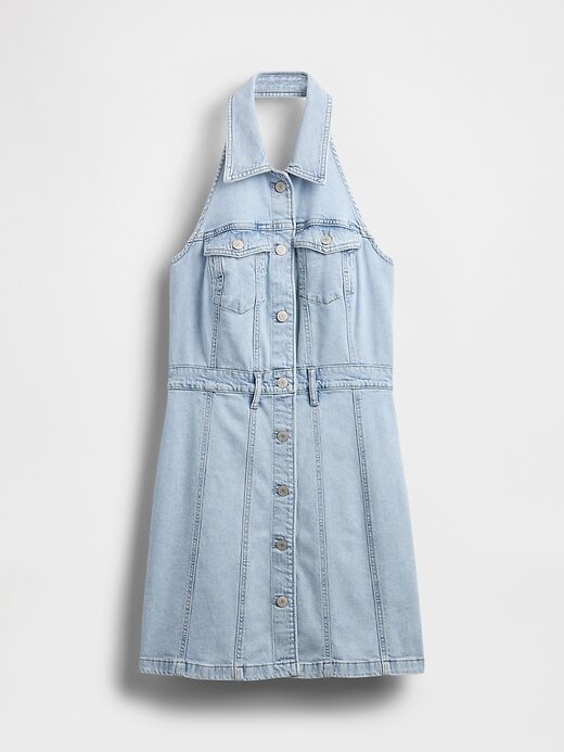 - Vestido midi jeans autêntico e com pouca elasticidade.