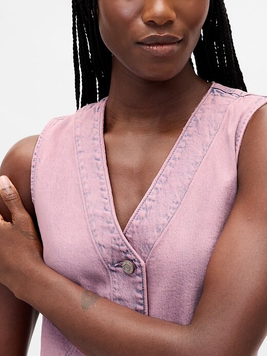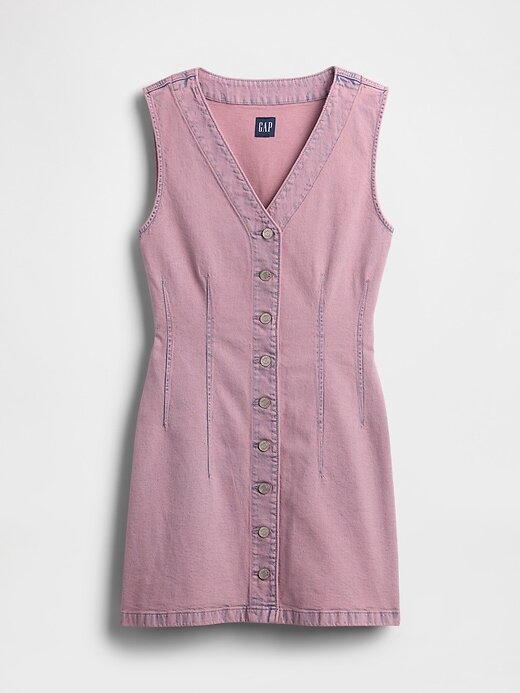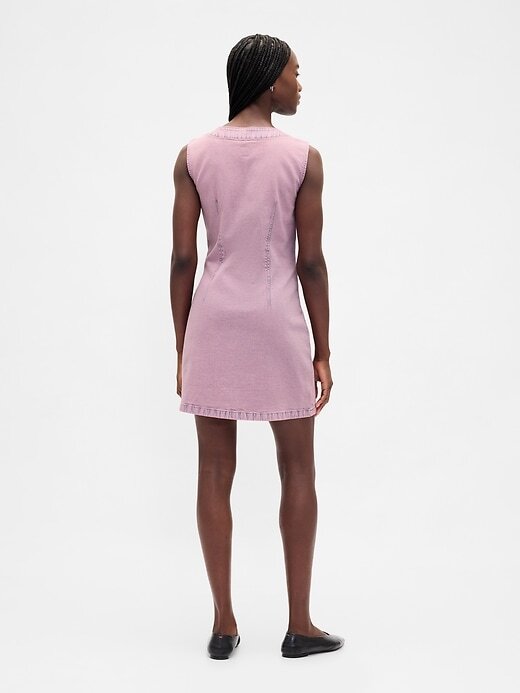 - Vestido curto jeans com pouca elasticidade.