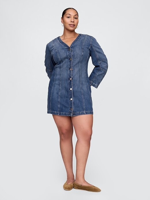 - Vestido curto jeans autêntico e sem elasticidade.
