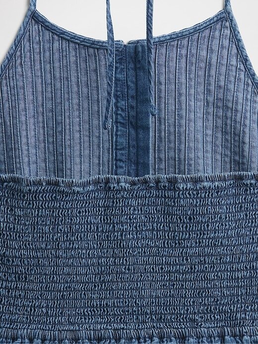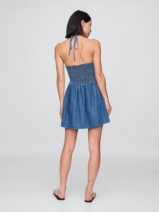 - Vestido curto jeans de algodão macio.