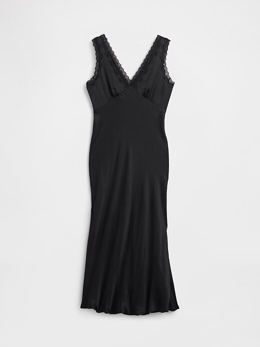 - Vestido longo de cetim liso.