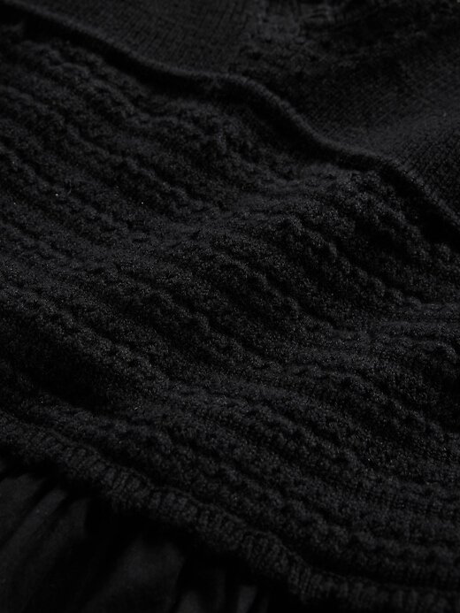 • Top de malha de crochê macio com saia de voil de algodão e vestido longo de técnica mista.