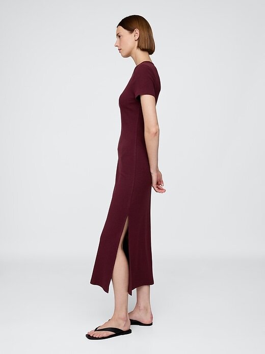 • Vestido longo tipo camiseta em malha canelada, macio e elástico.