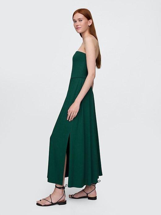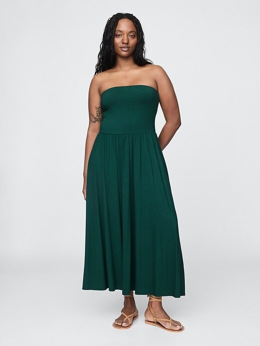 • Vestido longo em malha elástica com mistura de rayon e suave.