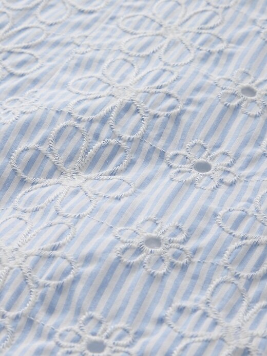 • Listras por toda a peça com desenho floral de ilhós bordado.