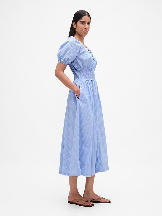 Vestido midi com manga bufante