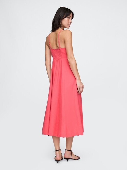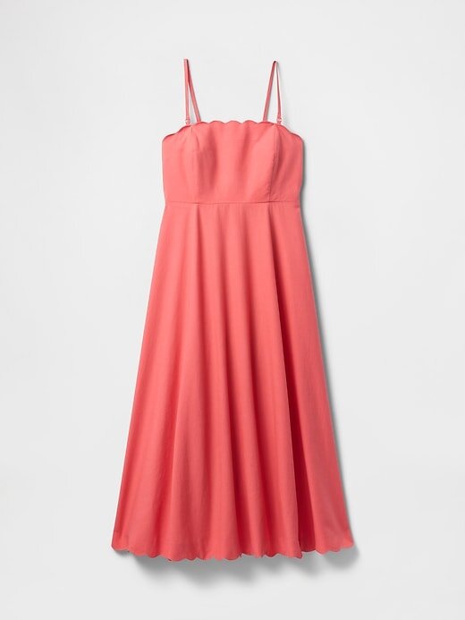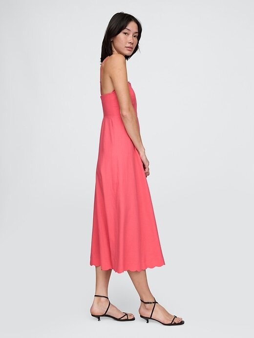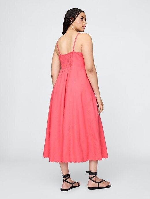 Vestido midi recortado em mistura de linho