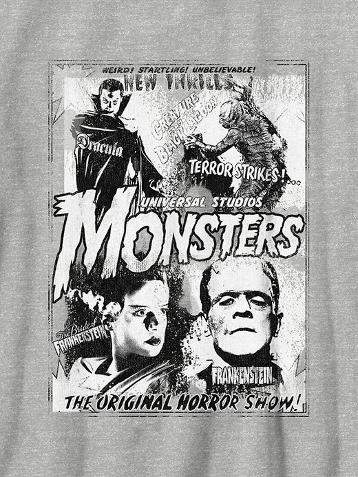 - Estampa oficialmente licenciada dos Monstros da Universal na frente.