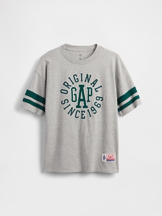 - Logotipos Gap variados e estampas no estilo Varsity.