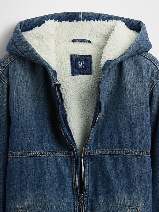 - Moletom com capuz jeans autêntico e sem elasticidade, com forro aconchegante em sherpa.