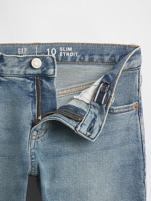 - Botão no centro (os tamanhos 4 a 8 têm fecho de gancho e barra sob o botão de pressão falso para facilitar a colocação e retirada), braguilha com zíper.
